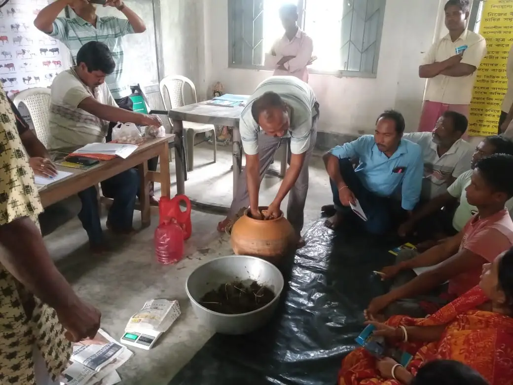 5) दिनांक 18 अप्रैल से 21 अप्रैल तक : बारुईपुर जिला के रायदिघी खंड के दक्षिण कङ्कणदिघी अंचल के प्रशिक्षण वर्ग में 5 गावों से आये हुए 11 महिलाओं सहित 30 किसानों को प्रशिक्षण दिया गया।