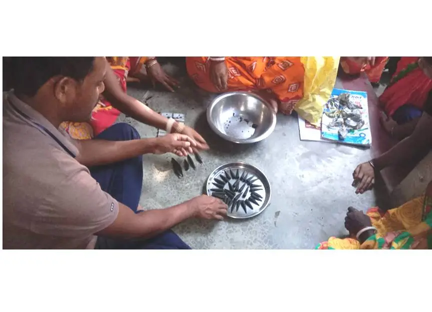 5) दिनांक 26 मई से 29 मई तक : मालदा जिला के इंग्लिश बाजार खंड के दूधिया अंचल के प्रशिक्षण वर्ग में 3 गाँवो से आये हुए 22 किसानों को प्रशिक्षण दिया गया। जिसमें 21 महिलाऐ थी।