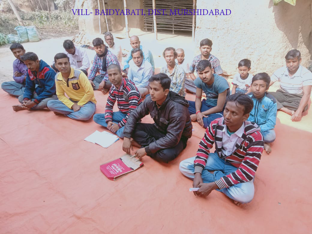 इस कड़ी में मुर्शिदाबाद जिला के नवग्राम ब्लॉक के बैद्यबाटि ग्राम में प्रशिक्षण वर्ग हुआ जिसमें 3 ग्राम से आये हए १५ किसानों ने भाग लिया।